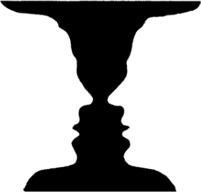 흰색을 전경으로 본다면 두 사람이 얼굴을 마주하는 것을 발견할 수 있을 것이며, 나머지 검은색은 배경이 된다. 즉, 사람은 사진기나 녹음기처럼 외부자극을 단순히 수동적으로 받아들이는 것이 아니라 각자의 욕구나 흥미에 따라 능동적으로 조직화하여 혹은 편집하여 지각한다는 말이다(그림은 게슈탈트 심리학자인 에드가 루빈(Edgar Rubin)의 ‘루빈의 컵(Rubin’s Cup)’이다).