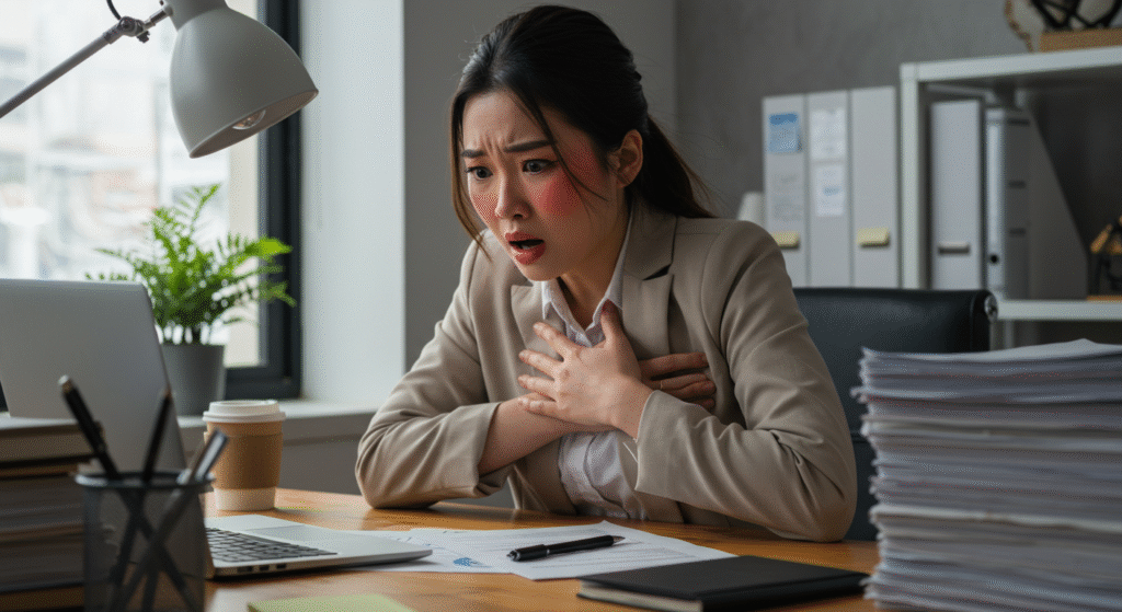 ▶ 이러한 증상은 갑작스럽게 나타나며 10분 이내에 그 증상이 최고조에 도달하여 극심한 공포를 야기함