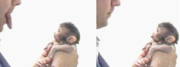 ▲ 인간의 행동을 관찰하고 동일하게 반복하는 원숭이(사진 출처: Wikipedia)