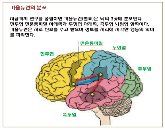 다시 말해서, 타인을 모방하고 공감하는 신경이 바로 ‘거울뉴런’인데 이는 다른 사람이 하는 행동을 보기만해도(관찰) 자신이 그 행동을 직접 할 때와 똑같은 활성을 내는 우리의 뇌 속에 위치한 신경 세포를 말한다.