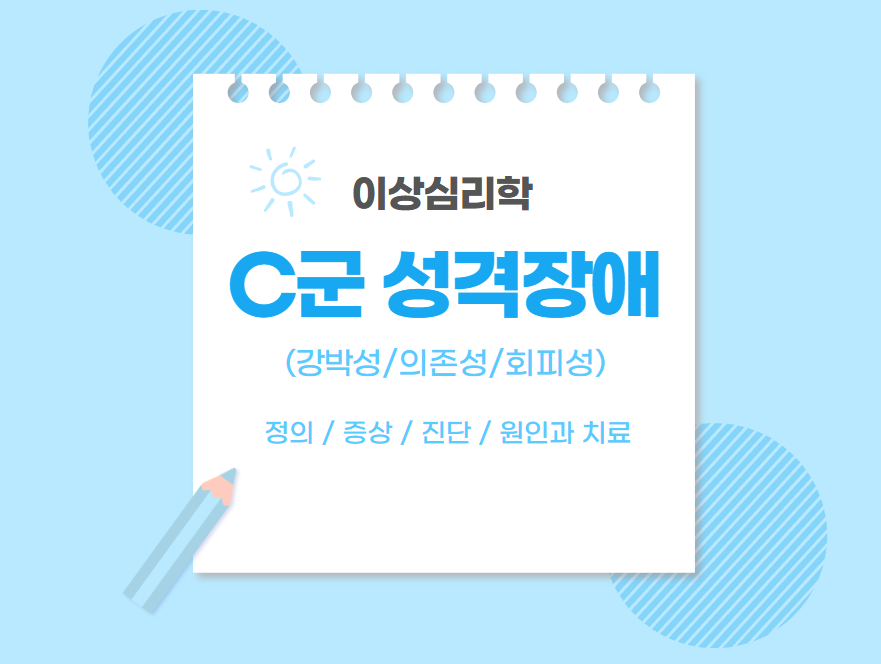 C군 성격장애(Cluster C Personality Disorders)의 핵심은 불안, 두려움 많이 느끼는 특성이다.