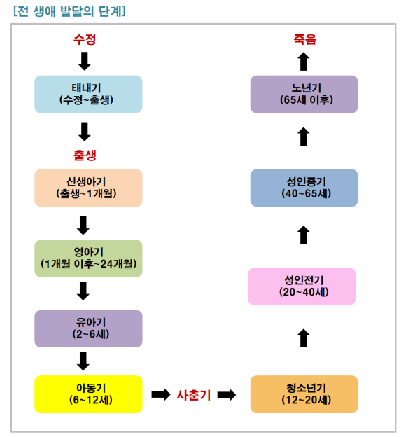 – 전 생에(태아, 신생아, 성인, 노인 포함)에 걸쳐 시간의 흐름에 따라 일어나는 모든 체계적인 변화와 안정의 과정
